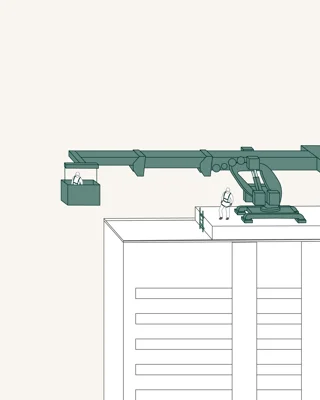 En tagmaskine letter adgangen til facaden og giver brugerne mulighed for sikkert at udføre vedligeholdelsesopgaver uden behov for stilladser eller stiger.