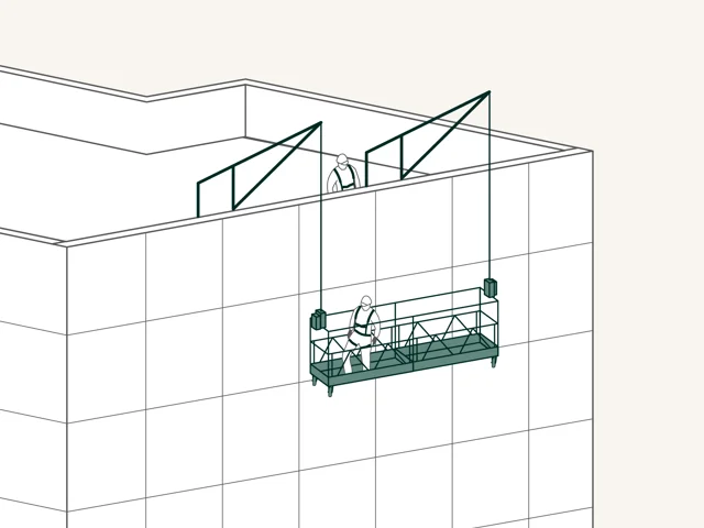 Med et hængestillads opnår brugerne sikker adkomst til inspektion og vedligehold af utilgængelige områder i især høje bygninger, hvor gængse adgangsmetoder ikke er tilstrækkelige.