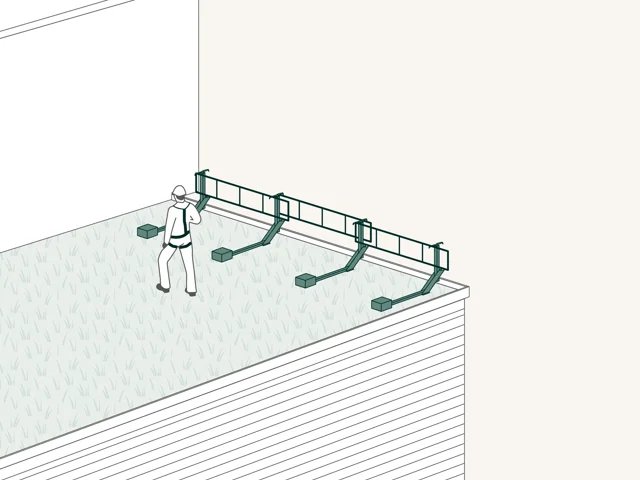 Climatic kan levere specialudviklede rækværk til flade tage beregnet på solcelleløsninger. Til hældningstage tilbyder vi leje af et såkaldt roof safety system (RSS) som et stilladsalternativ, der bidrager til at sikre tagfoden.
